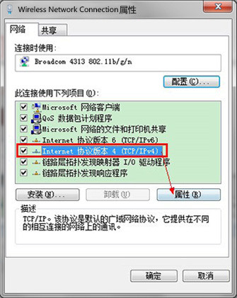 选择 [Internet 协议版本 4 (TCP/IPv4)],再点击 [属性]。